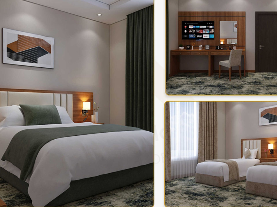 جودة عالية مضمونة: منتجاتنا معتمدة ومستخدمة فعليًا في أكثر من 250 مشروع داخل المملكة، ونقدم تشكيلة متكاملة تشمل كل احتياجات الغرف الفندقية والمرافق من الألف إلى الياء.